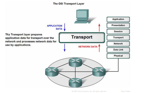 Transport layer takes data from upper layer (Application layer) and then breaks it into smaller size segments, numbers each byte, and hands over to lower layer (Network Layer) for delivery.